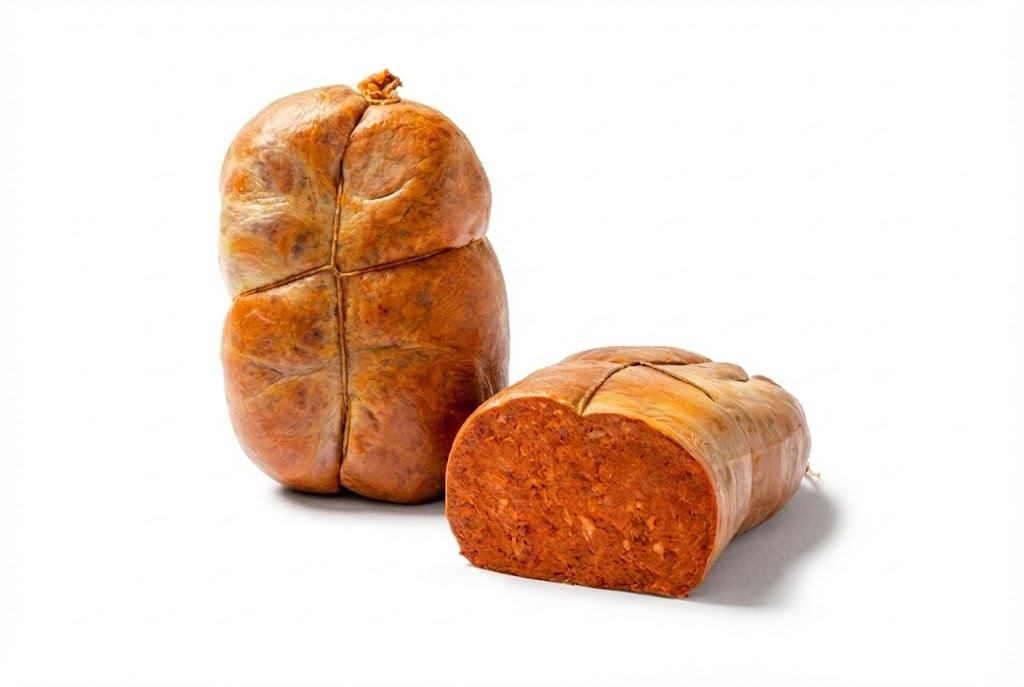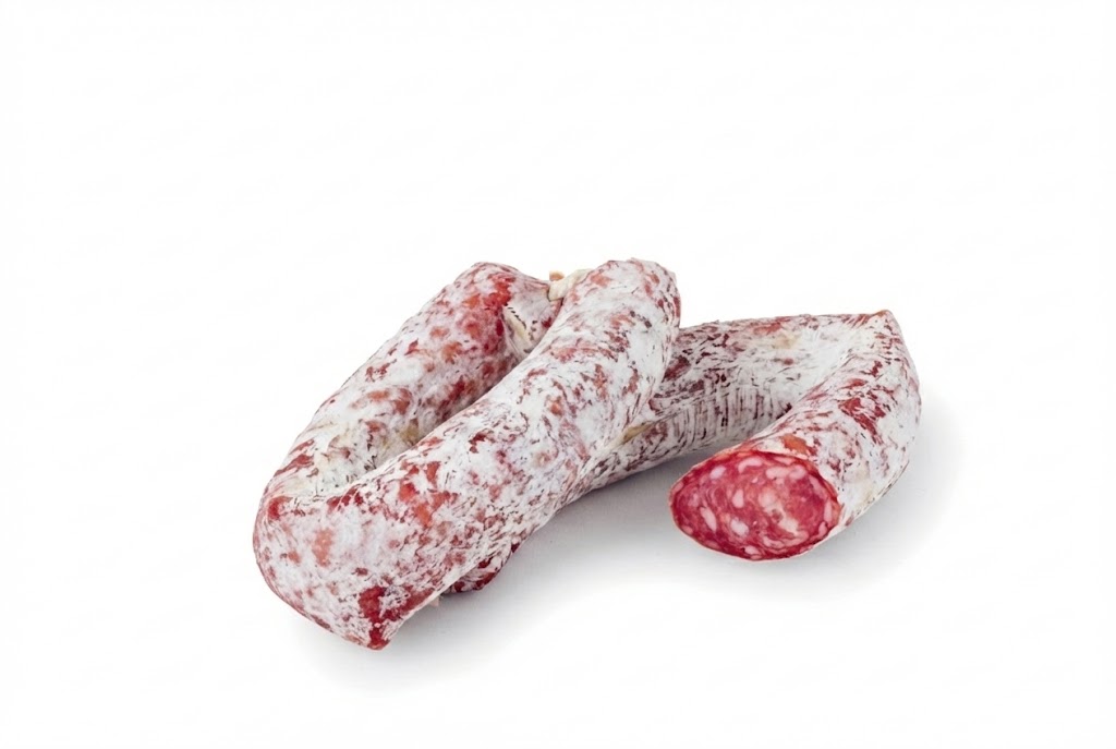 Curved spicy sausage crafted from select pork and bold seasoning. Naturally cured for a firm texture and intense flavor, ideal for grilling, slicing for antipasti boards, or enhancing rustic Italian recipes with authentic heat.