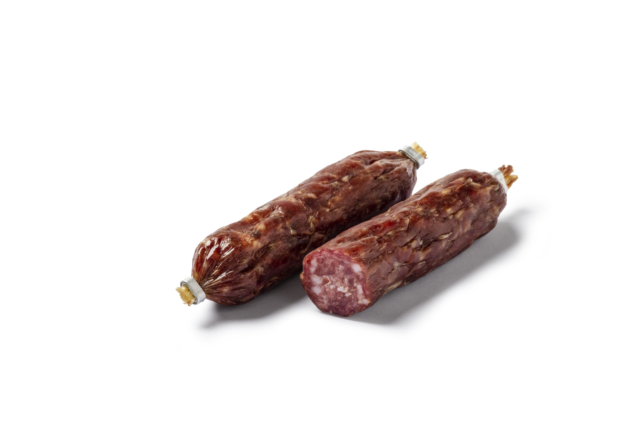 Venison salami with rich, gamey flavor and aromatic spices, crafted using traditional curing methods. Naturally aged for a firm texture and distinctive taste, ideal for gourmet charcuterie boards or pairing with bold wines for a refined culinary experience.