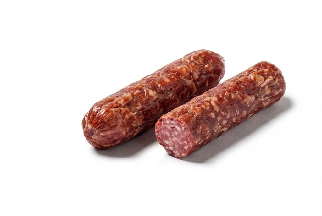Spicy Italian salami crafted from select pork cuts and seasoned with chili and aromatic spices. Naturally cured for weeks to develop a bold, smoky flavor and firm texture. Perfect for antipasti, gourmet boards, or adding heat to sandwiches and pizza.
