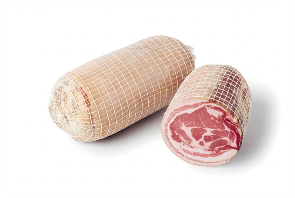 Rolled pancetta with balanced fat and seasoning, naturally cured for authentic flavor and tender texture. Perfect for slicing for antipasti or using in traditional Italian recipes to enhance taste and aroma
